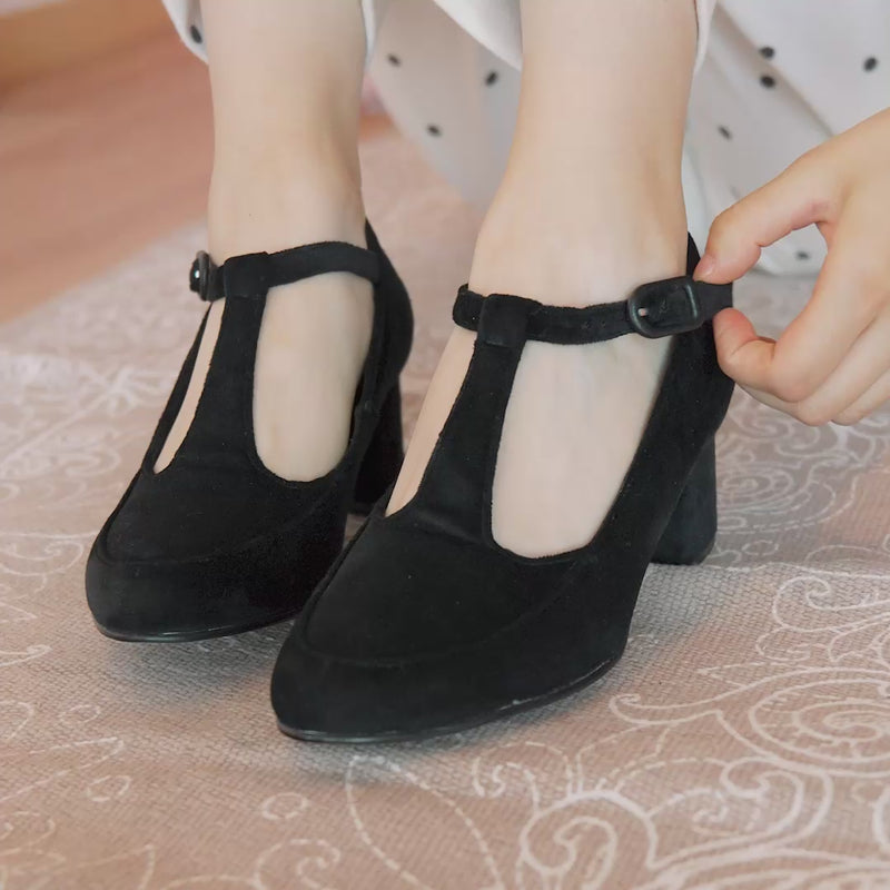 Mary Janes de terciopelo color azul con punta redonda. Suavecitas por fuera y por dentro, atemporales y muy versátiles.