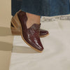 Zapatos negros de piel mujer. Esta edición de Julia tiene un grabado en la piel estilo cocodrilo en la parte frontal. Un modelo único y elegante.