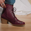 Botines de piel con agujetas, un clásico, versátil y atemporal. Amarás su tacón ancho y sus agujetas ajustables. Su tono vino es perfecto para darle un toque de elegancia a tus looks